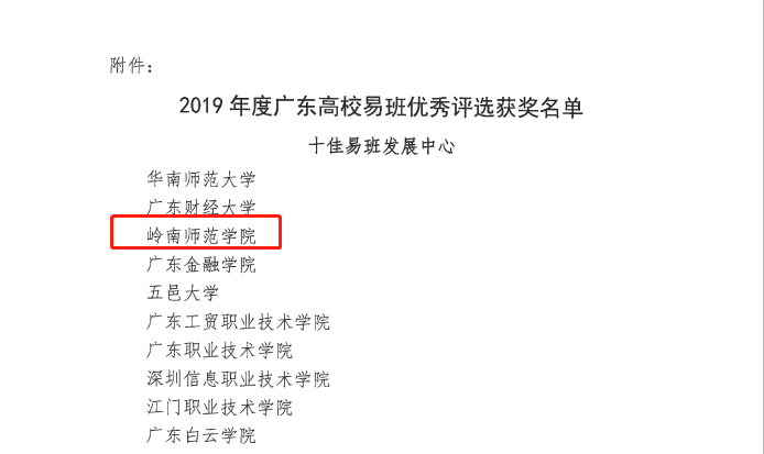 近日,2019年广东高校易班优秀评选工作结果揭晓,岭南师院易班发展中心以全省第三名获得年度广东高校“十佳易班发展中心”荣誉称号,我校易班工作站站长卢柳茜荣获“十佳易班工作站站长”荣誉称号,宣告该校易班工作一年来斩获25项全省、全国奖项,获奖数量比去年翻了六倍,充分展现该校网络育人工作的“水平提升”成效。