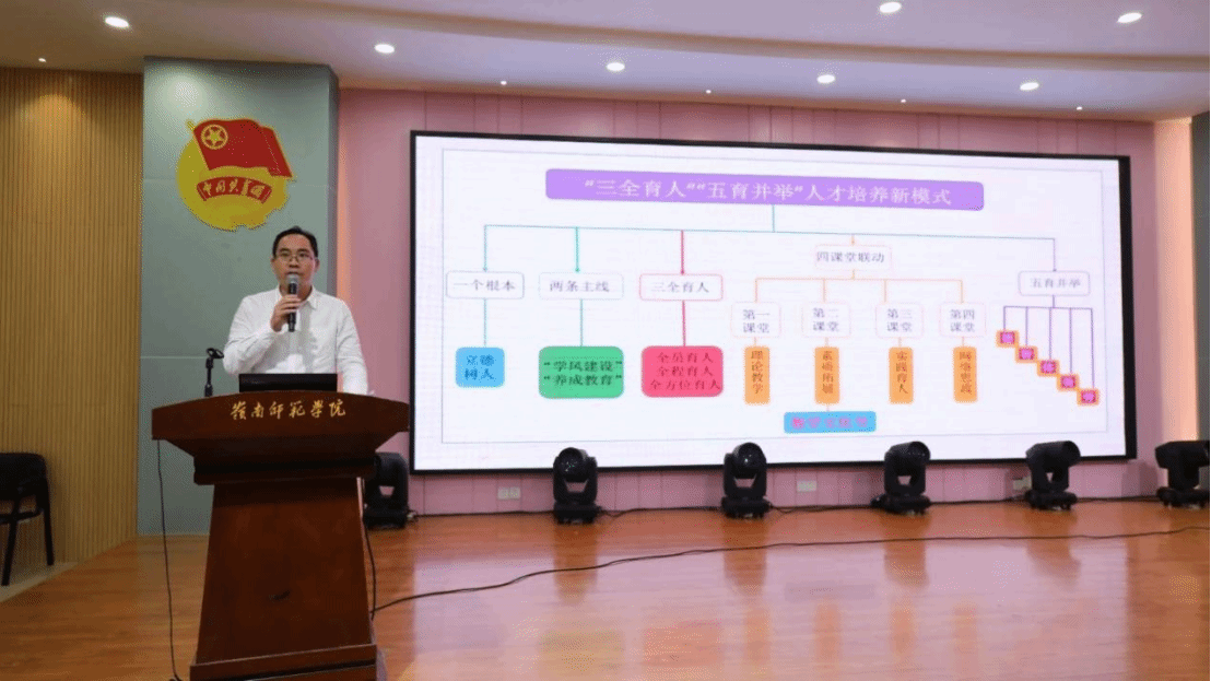 近日,岭南师范学院第十五届辅导员论坛在教三311顺利举行,旨在总结学工队伍建设工作,展示学工育人成果,深化学生工作研究。党委学生工作部部长林志军出席论坛并作第十五届辅导员论坛评审说明,勉励学工队伍进一步强化问题意识,以“新学工”的视角开展研究,实现理论研究指导实际工作,切实推动学生工作的高质量发展。