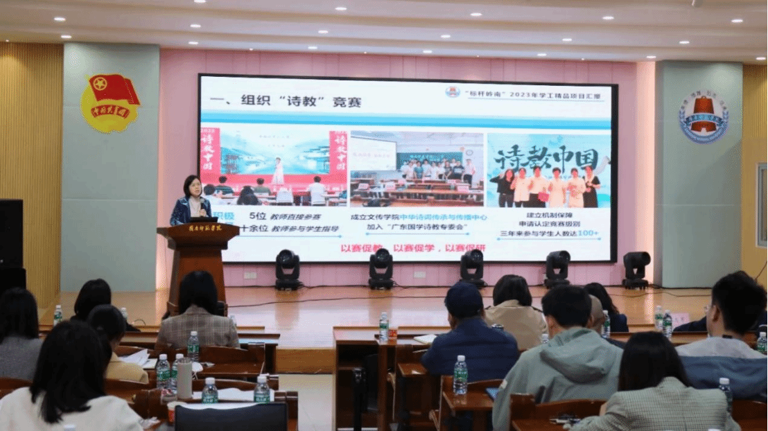 在“新学工”品牌建设专题研讨环节,获得2023年和2022年“标杆岭南”学工精品项目奖的学院进行了经验分享。文学与传媒学院通过精心营造“诗教”氛围、构建“诗教”联动课堂、打造“诗教”品牌活动、组织“诗教”竞赛等路径,实现“诗教”对高校第二课堂立德树人路径的拓展,成功打造读、诵、讲、悟相融合的“诗教”品牌活动。数学与统计学院将数学文化节与思政工作紧密结合,以三全育人为路径,与专业知识和专业技能紧密结合,与学术研究紧密结合,与数学文化紧密结合,形成思想育人、专业育人、科研育人和文化育人并驾齐驱,积极构建“五育并举”人才培养体系。