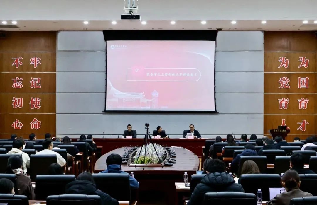 党委学生工作部部长林志军传达了近期会议精神并部署本学年重点工作。一是坚持党建引领,确保学生工作政治方向不偏航;二是以“质量提升”为核心,通过拓展海外研学和升学途径,提升本科生深造质量;三是推动学生工作管理规范化,落实学生学业预警机制,以规范制度筑牢学生工作根基。