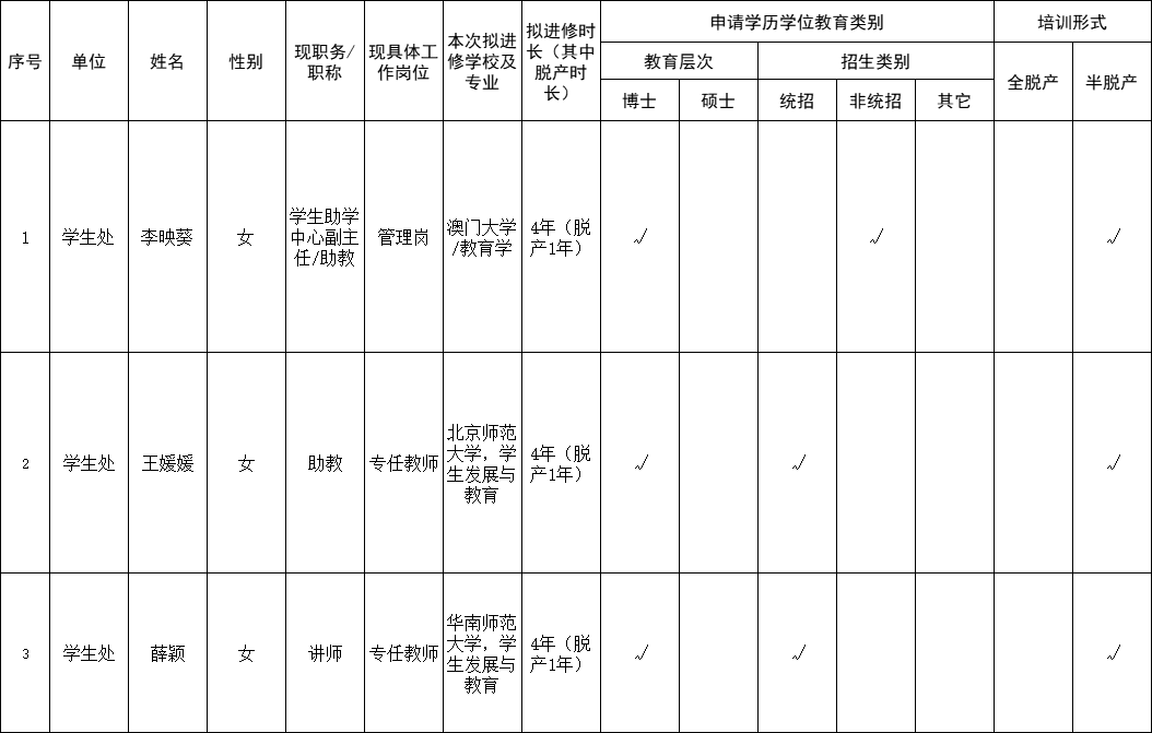 根据学校《关于做好2025年度教职工培训进修计划的通知》(人事〔2025〕44号)文件要求,经我处人员报名,现将我处推荐的2025年度教职工培训计划名单公示如下: