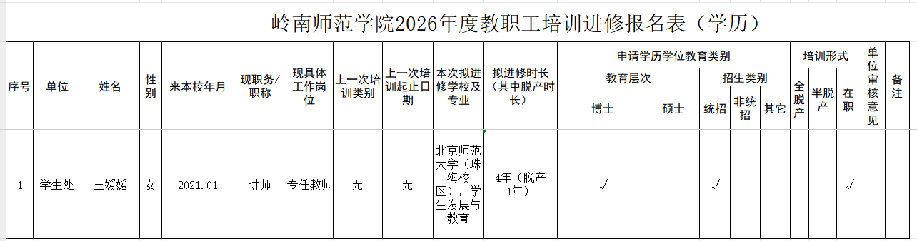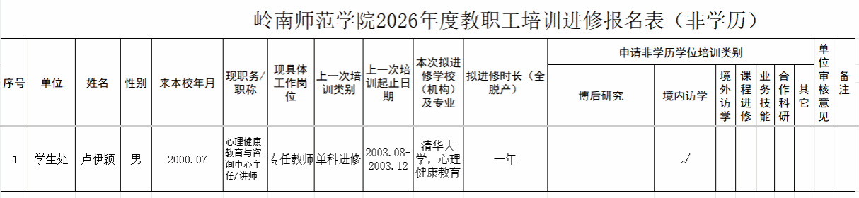根据学校《关于做好2026年度教职工培训进修计划的通知》(人事〔2025〕81号)文件要求,经我处人员报名,现将我处推荐的2026年度教职工培训计划名单公示如下:
