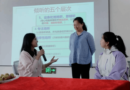 在针对学生情绪症状的访谈训练中,赵静波对谈话的目的和步骤作出详细的指导,谈话中应依次了解就诊背景、近一个月的主要情绪症状,明确区分抑郁情绪、焦虑情绪、烦躁易怒情绪的主要特点,针对学生所呈现出的典型症状进行具体化提问,收集有效信息。赵静波将讲授、实操演练、讨论分享、亲身示范等方式相结合,让辅导员老师获益匪浅。