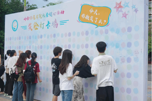 “微笑打卡”区,以一张张笑脸集合而成的签到记录下同学笔下一个个独一无二的可爱笑脸,通过微笑传递校园中的温暖瞬间,营造了轻松、自由、和谐、健康的校园心理氛围。参与体验活动学生纷纷表示,这次健心活动非常有创意,能让大家在忙碌的校园生活中体验快乐和成长。