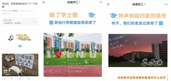 让图像接合文字的语图关系,主要有两个方面的考量:其一是结合青年群体的网络视觉心理,考虑到大学生对校园文化热点的关注程度,图像灵动的光影与丰盈的色彩更能满足学生群体的主体性与能动性,能让他们在“主人翁”的身份认同中参与校园文化的建构与讨论;其二,新时代下高校对思政育人工作的高质量发展提出了新要求,而依托网络新媒体的育人手段则更需要关注其在学生群体中的显示度与成效性。在这样的背景下,图像正因为能同时收容每个鲜活个体的普遍性与特殊性而成为了增强思政工作显示度的重要桥梁——每一张图像涵盖的校园自然景致和人文风光,有别于校园宣传片与校史记录片的宏大叙事,这些微观的场景,无一不彰显着社会主义核心价值观在毕业生身上的生动体现,表明了每个大学生的青春故事尽管各有不同,但都棱角分明、光芒四射,每个素未谋面的毕业生都身穿学士服走上拨穗礼成的盛大场面,在百年书院里写下一个个奋进者的故事。由此可见,图像的“缩影式”叙事,更能激活学生群体的情绪,并充分调动情绪价值凝聚思想共识,相较长篇累牍的语言描述而言更能发挥“润物无声”的育人作用。