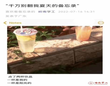 在上图推文《千万别打开我夏天的备忘录》中,一张柠檬茶饮料的照片引起了较多学生的关注。在照片里的两杯柠檬茶饮料,一杯被摆放在阳光下,另一杯则被安放在角落里。当这张图被作者发到朋友圈时,大家纷纷感慨阳光下的柠檬茶既是夏天的标志符号,也是大学生心理状态的隐喻,让柠檬茶的清凉口感与阳光的热烈奔放产生对话,象征着大学生校园生活的热情似火与自由奔放。然而,当这张图被收编为思政育人素材,并赋予了特定情境的语图关系后,颇有意思的一幕就出现了——从朋友圈的图像到微信推文的语图,柠檬茶饮料的图像符码挣脱了“单打独斗”的状态,被放置到语言主导的释义结构中,进而产生了丰富的层次与内涵。首先,柠檬茶饮料的图像符码遭遇语言的命名与阐释后归属为公众的情感资源,成为了公众话语中极具亲和力的一部分并昭示着公众生活情感价值的认同来源。其次,进入公众话语体系的柠檬茶饮料符号同样被官方话语所发现,被迅速纳入“饮料不利于健康成长”的释义结构,承受着官方话语价值的批判与指摘。尽管如此,官方话语没有第一时间将其驱逐出去,而是仔细打量着柠檬茶饮料在这张图像中隐含一切可能的政治教育内涵,并思考了它对于缝合官方话语与公众话语裂隙的潜能,最终被语言改造成“积极乐观、向阳而生”的育人符码收编为高校网络思政的教育资源。