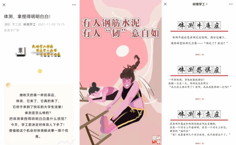 上图推文《体测,拿捏得明明白白!》,通篇的语言符码与图像符码都在默契的互话与互文中展现体育活动的力与美,在全民运动形成社会时尚的今天,这一系列符码被归类为用于建构运动文明风尚的社会性话语。然而,思政类公众号这一出场路径,加上我国教育评价体制机制改革的情景语境,宣扬体育力道美的语图关系便成了推崇“五育并举”、倡导学生投身体育运动、锻造强健体魄的教育性话语。从社会性话语到教育性话语,这一转向源自一段隐蔽的博弈关系,即以学生群体为发声主体的公众话语试图压制官方话语,通过信访、制造舆论等形式宣示对官方话语的抗拒。