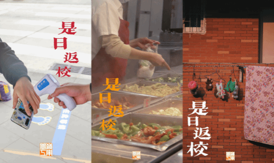 除深度长文外,无修饰、无阐释的纯图推文也是造成公众号叙事“沉默”现象的另一种类型。以下图系列海报为例,当我们尝试把海报中“是日返校”四个字掩盖遮蔽后,图像即退行到原始的、毫无修饰的状态,即通常所说的“裸图”,其符码秩序呈现着飘逸、浮动的状态。例如在食堂阿姨为学生打菜的画面里,图像符码看似固定,由饭堂阿姨、菜勺、菜式、价格组成,这些符码如果没有受到编制上的限制,其组合的形式与意义指向本身就包含了不确定性,既可以被理解为劳动人民风采,也可以理解为学校饭堂伙食缩影,甚至还可能被理解为学校饭菜价格大比拼。在网络思政公众号中的长图推文中,对图片的理解核心在于视觉形式,视觉的波动性、随意性与主观性决定了图片意指的模糊性。同时,图片之间若无明确的关联性、目的性、组织性,没有作出精确的主题对焦,既无法提供网络思政的教育价值,又无法在大学生群体中建立认同,则陷入“两头不讨好”的传播困局。